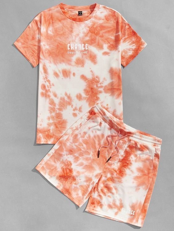 Home Casual Wear Tie Dye Tee & Drawstring Waist Track Shorts